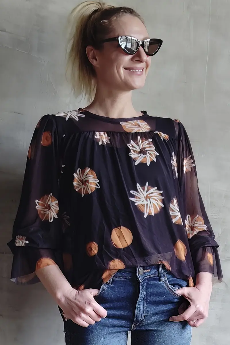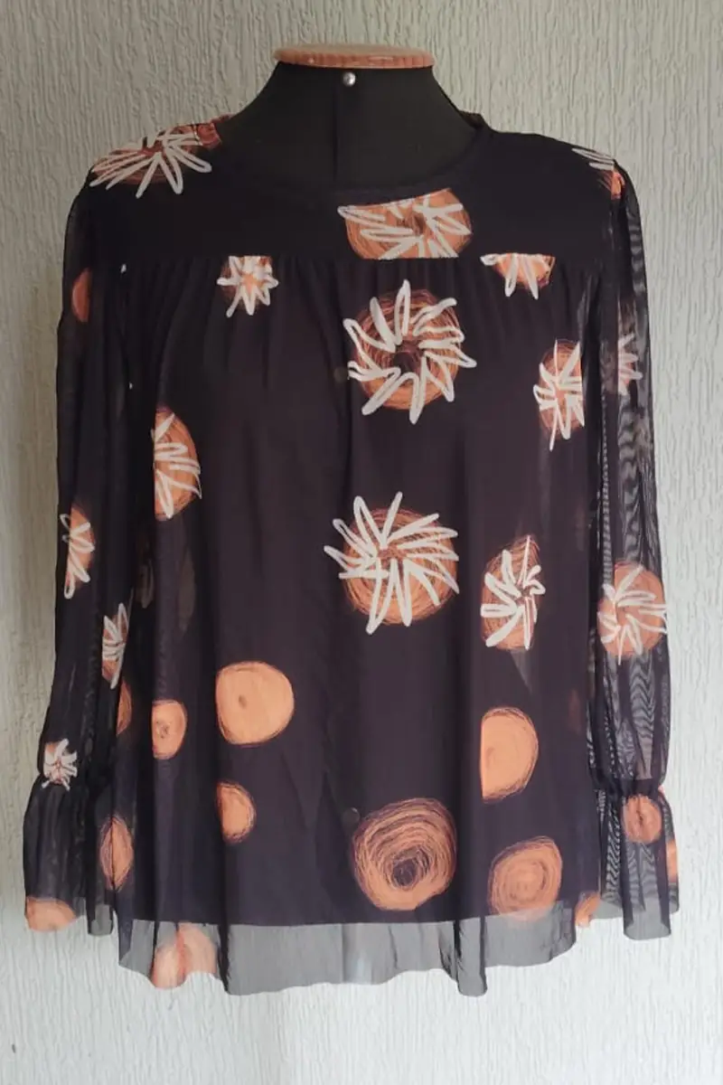 Bata de tule com frente levemente franzida. Não acompanha regata.