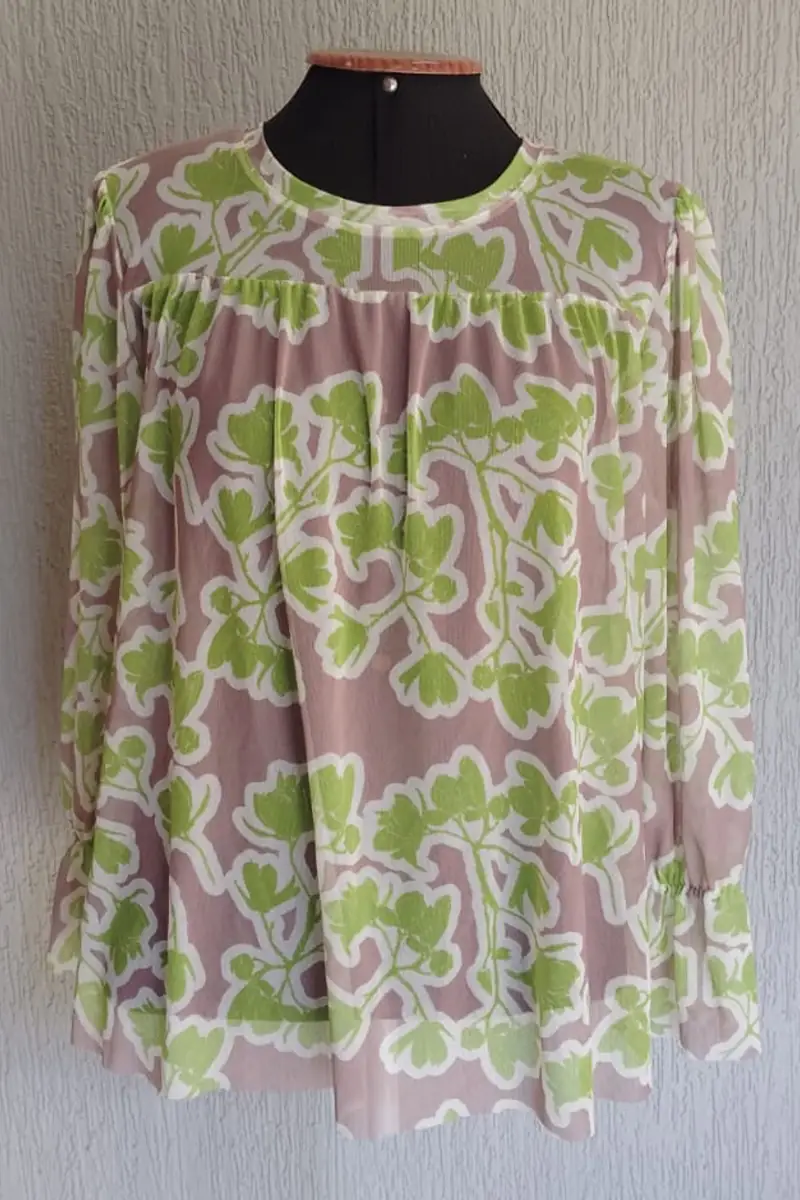 Bata de tule com frente levemente franzida. Não acompanha regata.