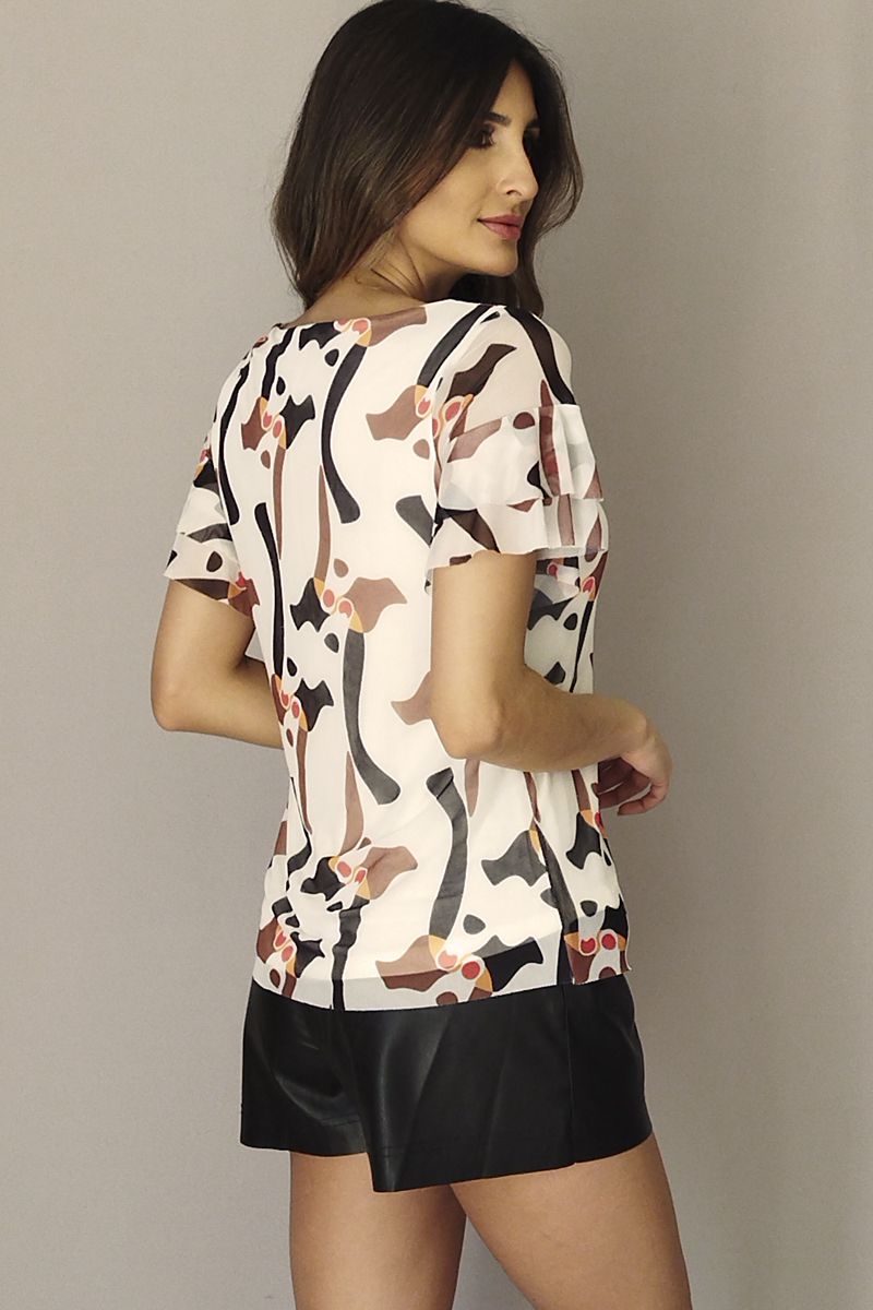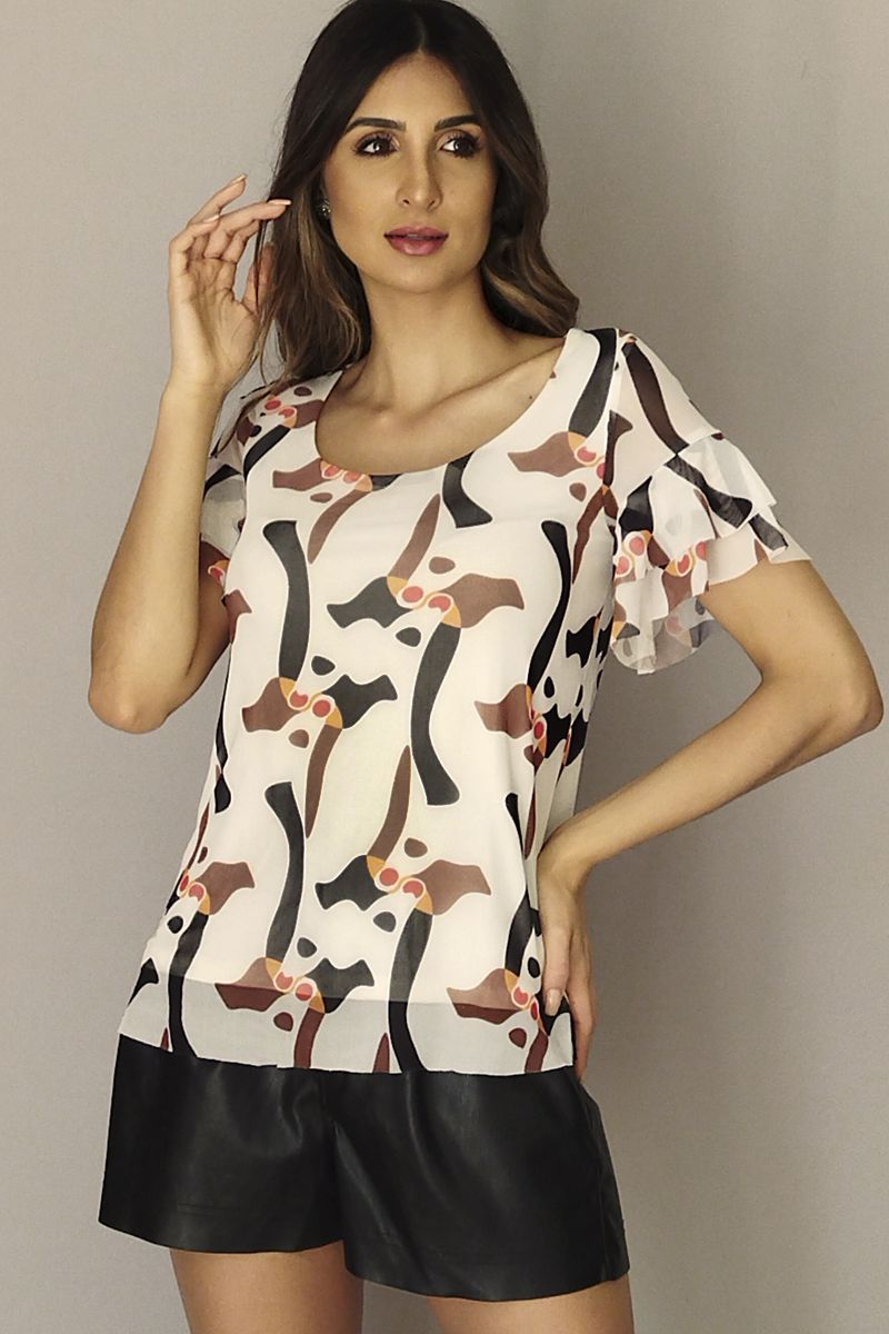 Blusa de tule básica com mangas em duas camadas /343BRJ115