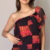 Blusa de tule sem alças, deixando os ombros à mostra, com lindo babado no decote