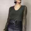 Blusa de tule gola alta e manga bufante /404AZ1