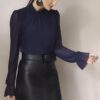 Blusa de tule gola alta e manga bufante /404VD1