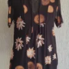 Blusa de tule estampada, manga curta, com gola e amarração na frente. Com forro
