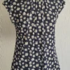 Blusa de tule estampada com manga japonesa, decote franzido com gola na frente e com forro.