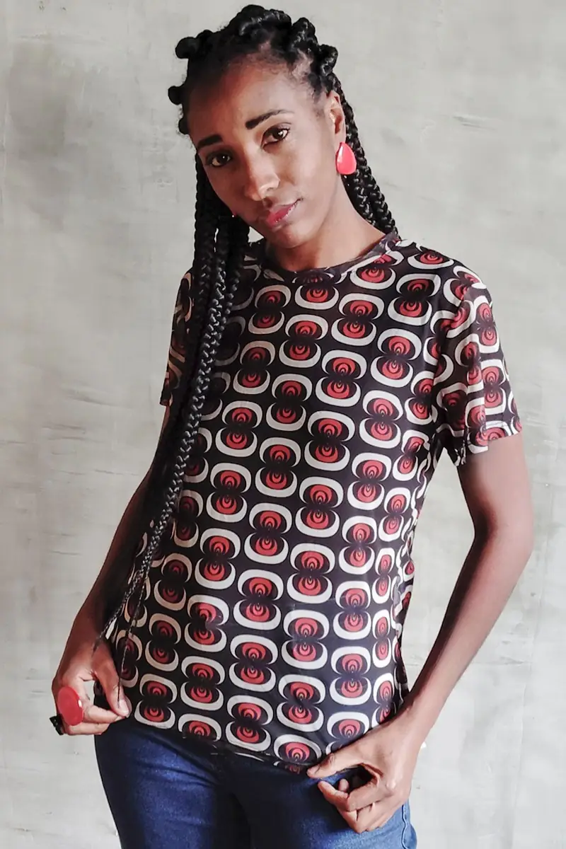 T-shirt de tule estampada. Não acompanha regata.