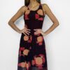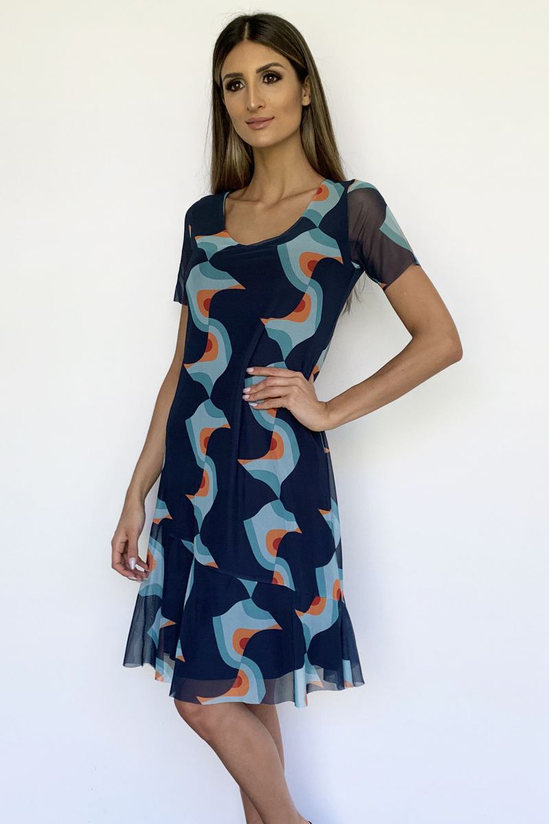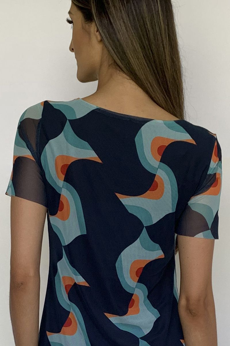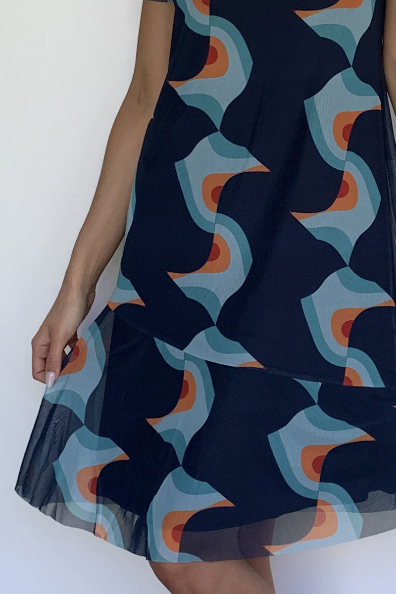 Vestido de tule com decote redondo e detalhe com barra em corte transversal