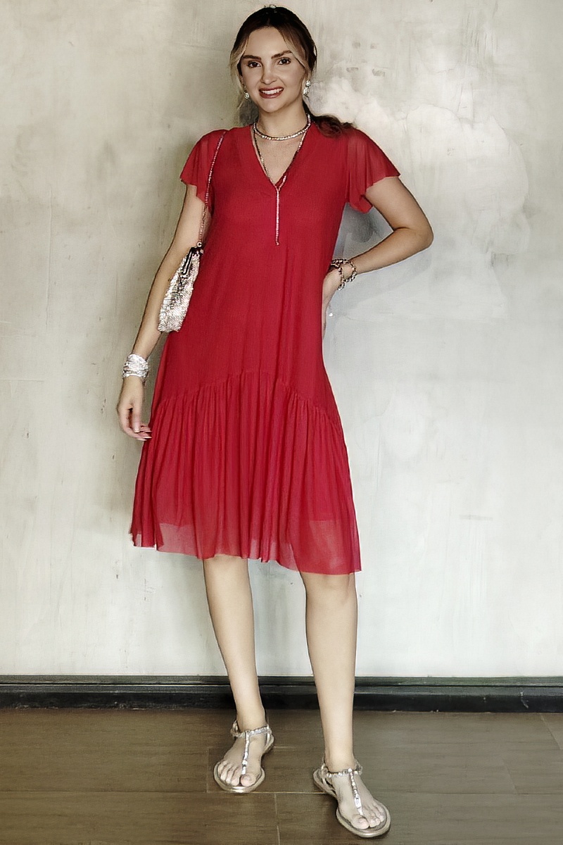Vestido de tule decote V e manga godê /481VM3