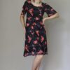 Vestido de tule em modelagem évasé com cortes diagonais no corpo e duas camadas de manga