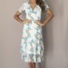 Vestido de tule em modelagem évasé com cortes diagonais no corpo e duas camadas de manga