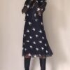 Vestido de tule gola alta e detalhe decote gota nas costas.