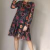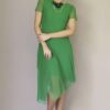 Vestido de tule cor vermelho, acinturado, corte em A, comprimento midi com fendas laterais, gola alta e sem mangas. Fechamento nas costas com botão. Com forro.