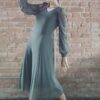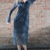 Vestido longo de tule estampado, transpassado, mangas no comprimento 3/4 e com forro em malha.