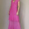 Vestido de tule maxi transpassado com forro. Parte da saia com dois babados godê proporcionando muita leveza e feminilidade.