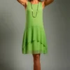 Vestido de tule com manga cavada e camadas sobrepostas