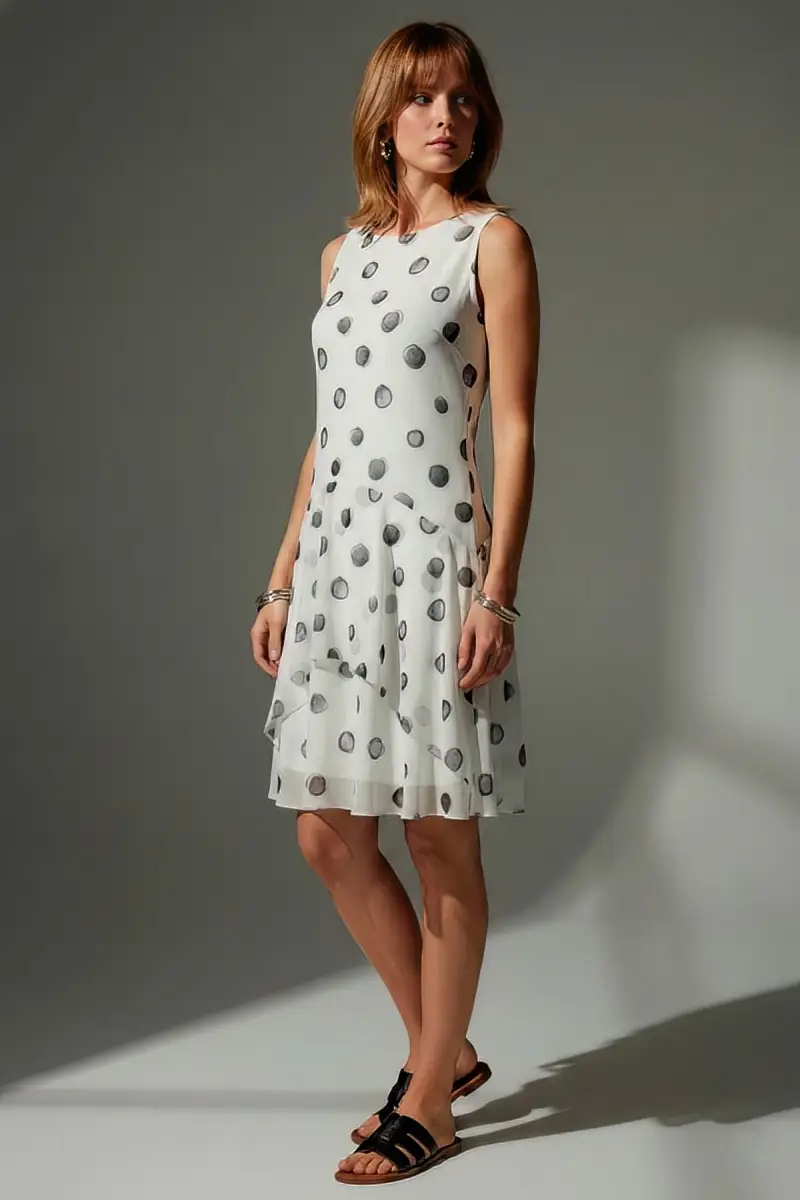 Vestido de tule estampado com manga cavada e camadas sobrepostas, privilegiando movimento e graça para este modelo. Com forro.
