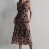 Vestido de tule comprimento midi com cortes verticais e nesgas