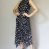 Vestido de tule comprimento midi com cortes verticais e nesgas