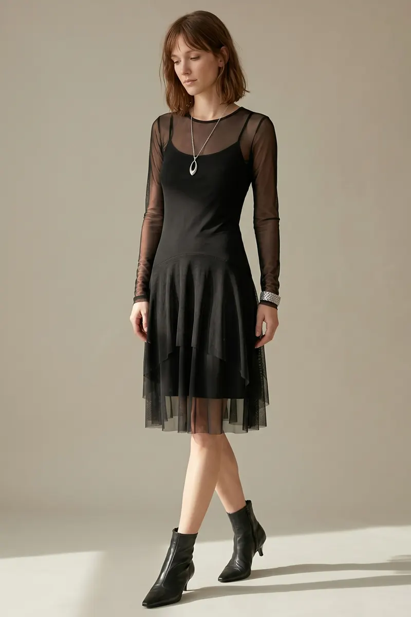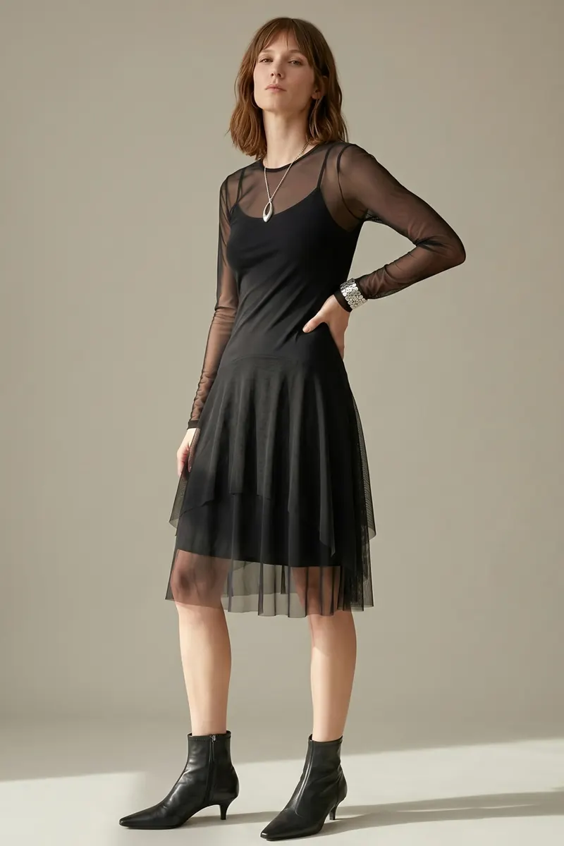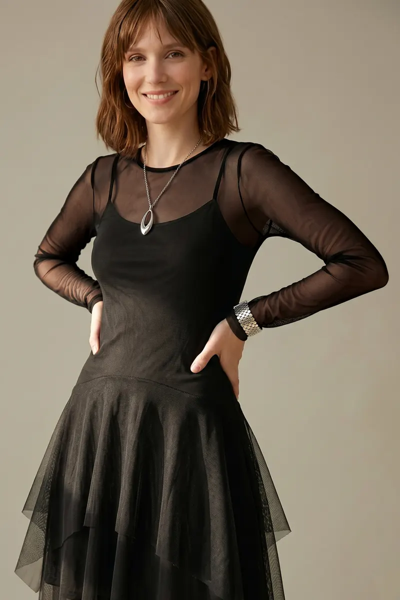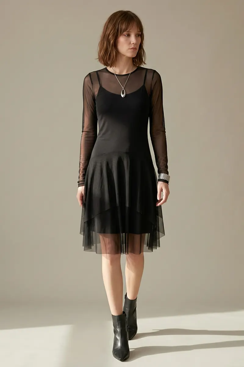 Vestido de tule com decote canoa /370PTO