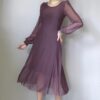 Vestido de tule cor vermelho acinturado com gola alta, fendas laterais e mangas 3/4.