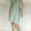 Vestido de tule estampado cor comprimento midi, decote V e manga levemente bufante. Com forro