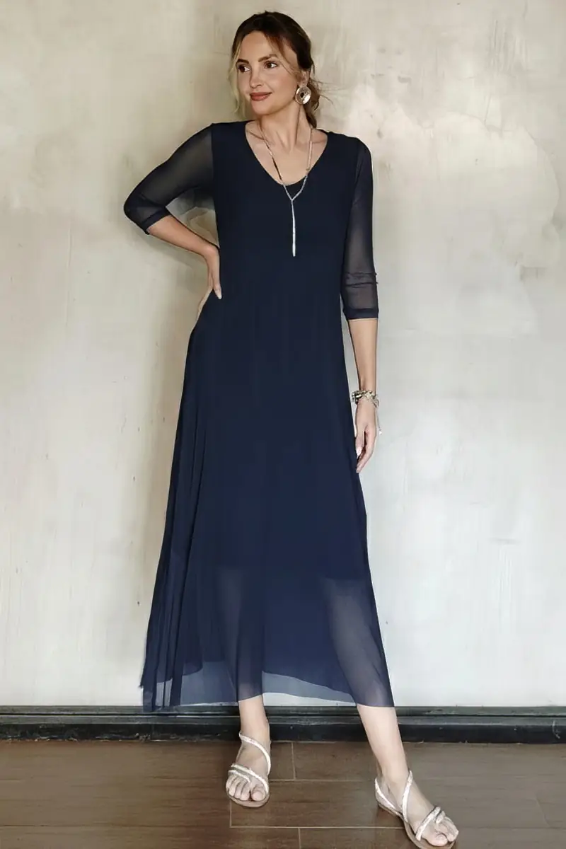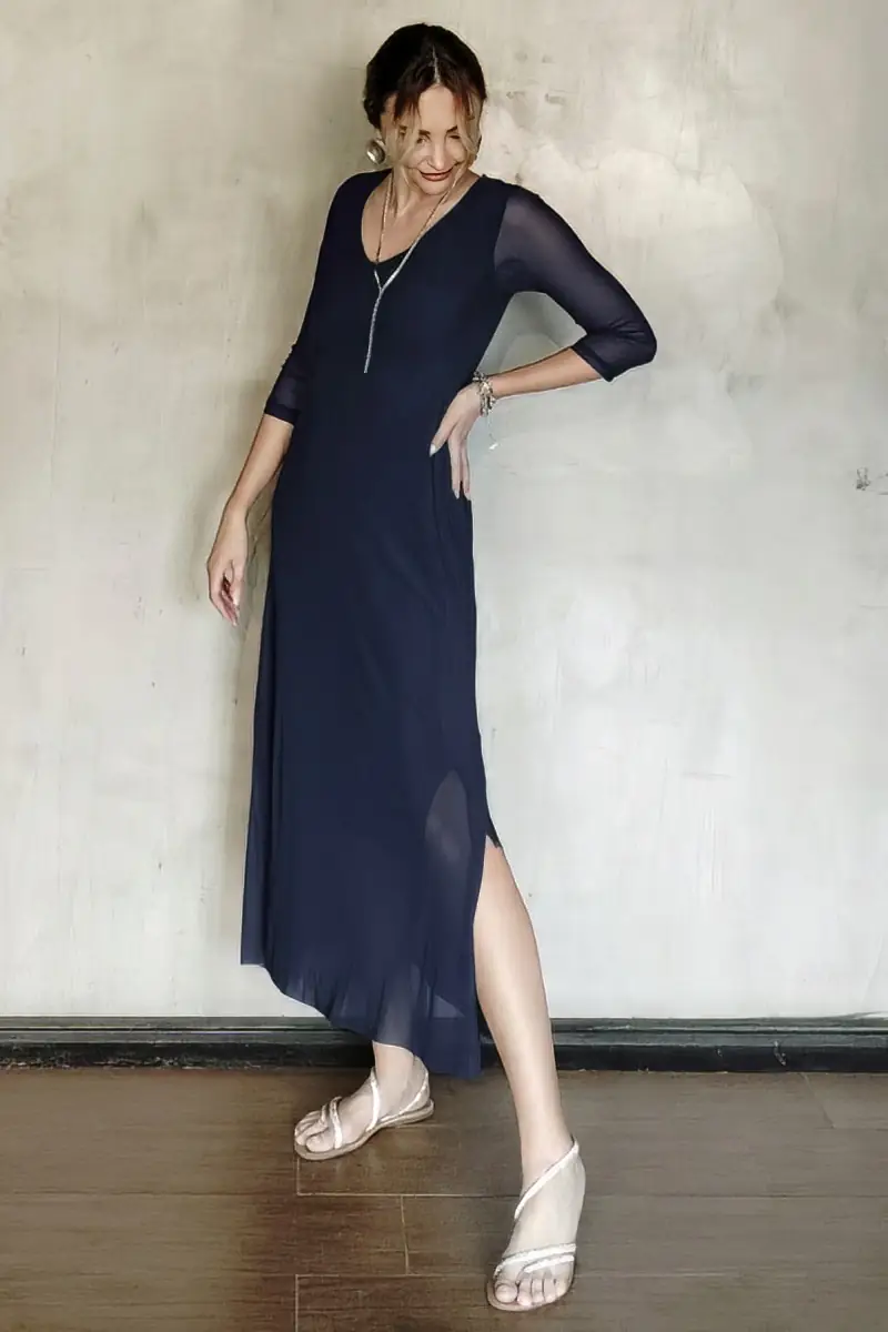 Vestido decote V com fendas laterais /563AZ1