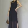 Vestido longo manga cavada com echarpe