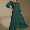 Vestido longo mullet ombro a ombro