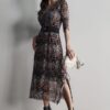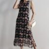 Vestido de tule comprimento midi com cortes verticais e nesgas